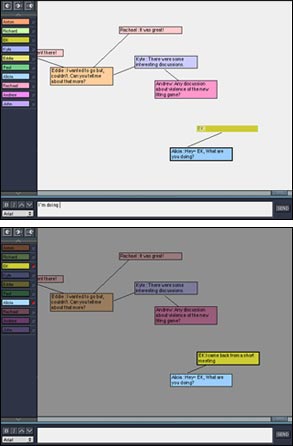 Newsdiver creates a half-transparent rectangle when a user starts typing, As a result, the user lets other participants know that he/she is trying to say something and, at the same time, reserves a space for his/her messages by having a half-transparent colored rectangle.
