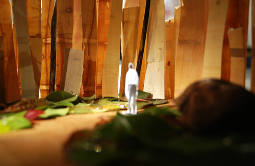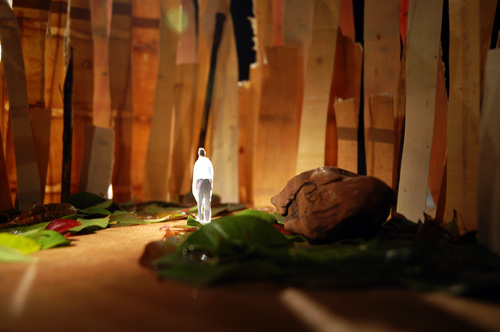 There is a specific spot at Will Rogers State park that was the inspiraton for recreating a space that is sacred to me. A majority of the trails in the park are fully exposed to the sun and full of small shrubs and dry grass. There is one spot where there is a huge mass of tall trees, green moss, and colorful leaves. Entering this space suddenly you are in shade, the breeze is cooler, and the sun creates strong shadows. It is my mountain oasis. This project was created to honor one of my favorite beautiful, peaceful places.