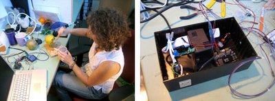 The first one is ready to go: "object #1 gummy toad." It's long wiring goes to a project box with all the power supplies and the micro-controller. When i pass it off to a writer, he or she will plug a light into the socket on the project box and use the object as the switch for the light. After a week of living with the object, I hope the writer can put down a story inspired by the experience. I will make a few changes to the object - invert the interaction - and pass it on to another writer, trying to get at least 3 stories per object by the fall.